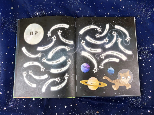 全书的内容是以一只爱看星星的猫咪——费利西蒂的视角和口吻来介绍的。比如猫咪说:“像我这样的猫咪,或是像你这样的人类去观察夜空,是为了了解在地球以外我们还可以看到些什么。有时候我观察夜空,是因为我觉得:观察我们身处的宇宙是一件非常神奇的事。”以一只可爱的猫咪作为向导,带着大家一起探索夜空的奥秘,读起来就更加亲切有趣,更有代入感和感染力。